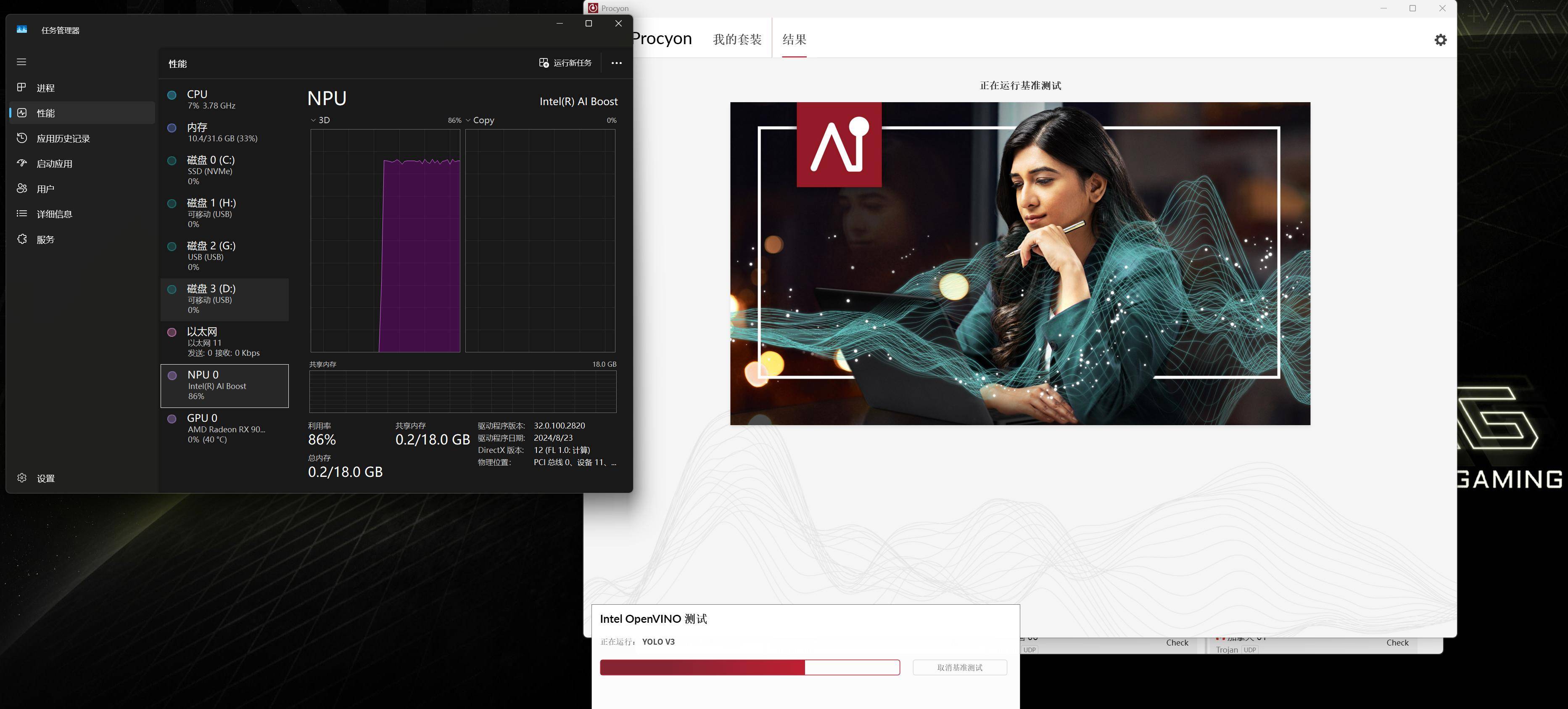 CPU供电部门的金属散热片用料相当厚实,比拟依赖 CPU 或 GPU 完成 AI 运算,林大正在这一代的实力可见一斑。它支撑最高192GB 的 DDR5-6400内存,处置器中的NPU的负载是86%!让进修、办公取文娱全面进入智能加快时代。